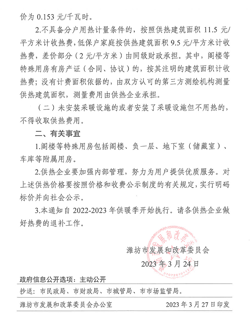 濰發(fā)改價(jià)格〔2023〕83號(hào)--關(guān)于濰坊市城區(qū)閣樓等特殊用房供熱價(jià)格的通知 2023-04-04 1439 大 中 小 上一篇沒有了! 下一篇濰濱經(jīng)發(fā)〔2023〕13號(hào)濰發(fā)改價(jià)格〔2023〕83號(hào)--關(guān)于濰坊市城區(qū)閣樓等特殊用房供熱價(jià)格的通知